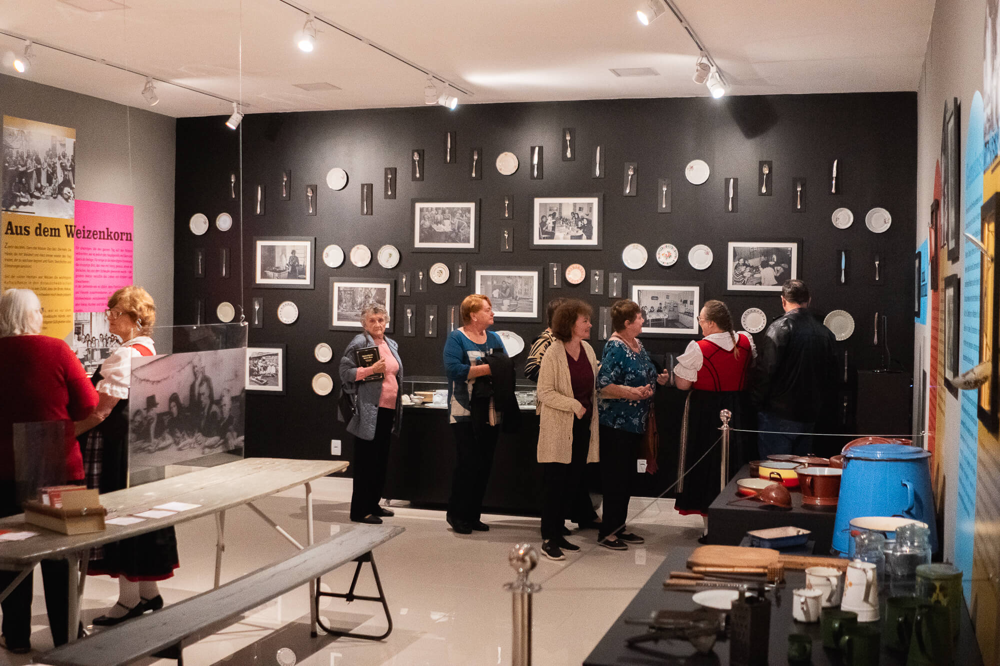 Em Memórias à Mesa, o Museu Histórico de Entre Rios (MHER) trouxe como tema o patrimônio alimentar, as histórias e as memórias que envolvem a gastronomia suábia. Apresentaram-se momentos diversos em torno de uma mesa (para cozinhar ou comer) e seus inúmeros significados: família, união, alegria, superação, celebração, ou, muitas vezes, dificuldades e escassez para abordar o ato de se alimentar para além de uma necessidade biológica ou um ato físico, mas como o “nutrir a alma” com lembranças e afeto, um ato social permeado pelos traços culturais e por memórias afetivas.
