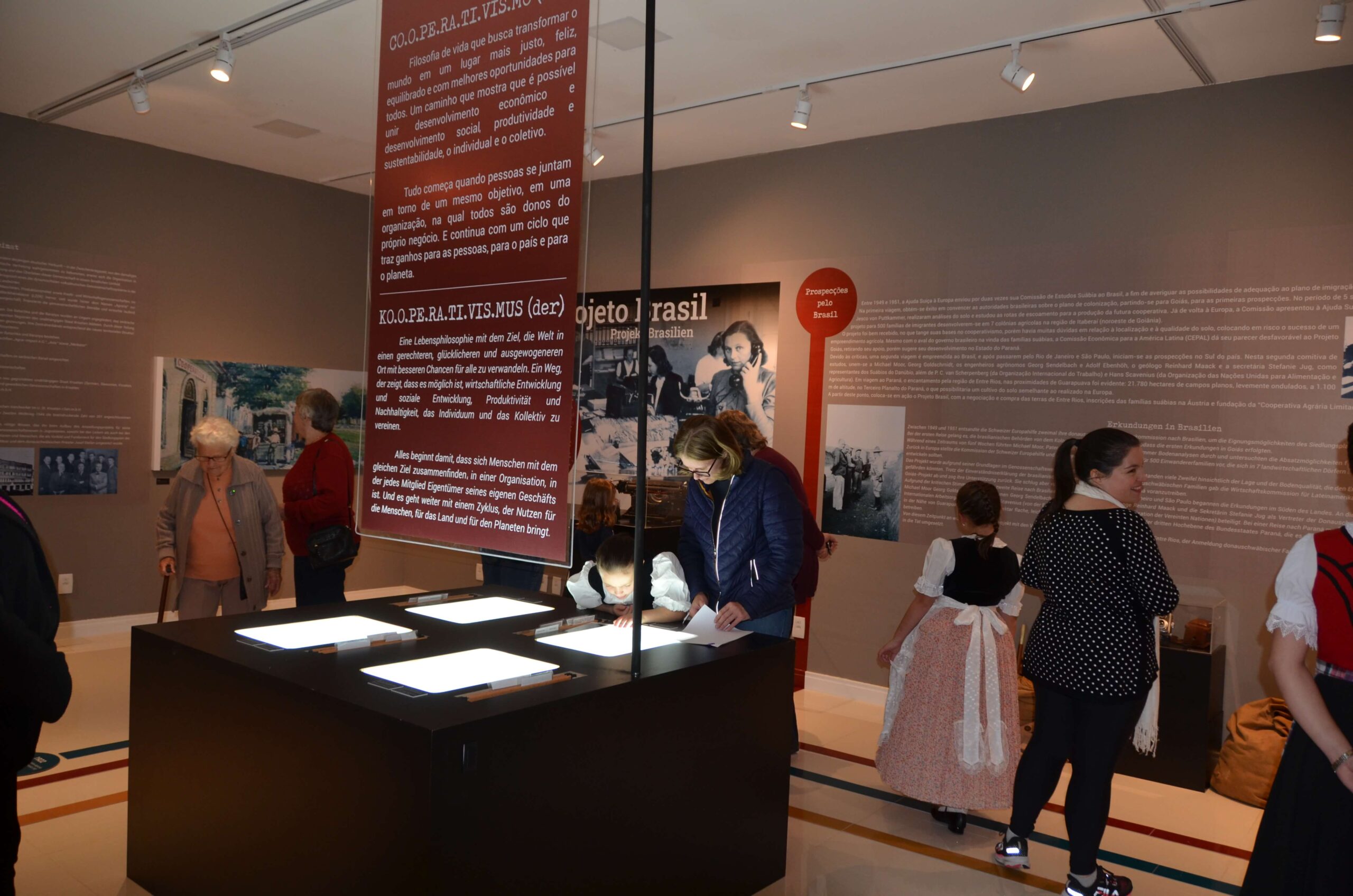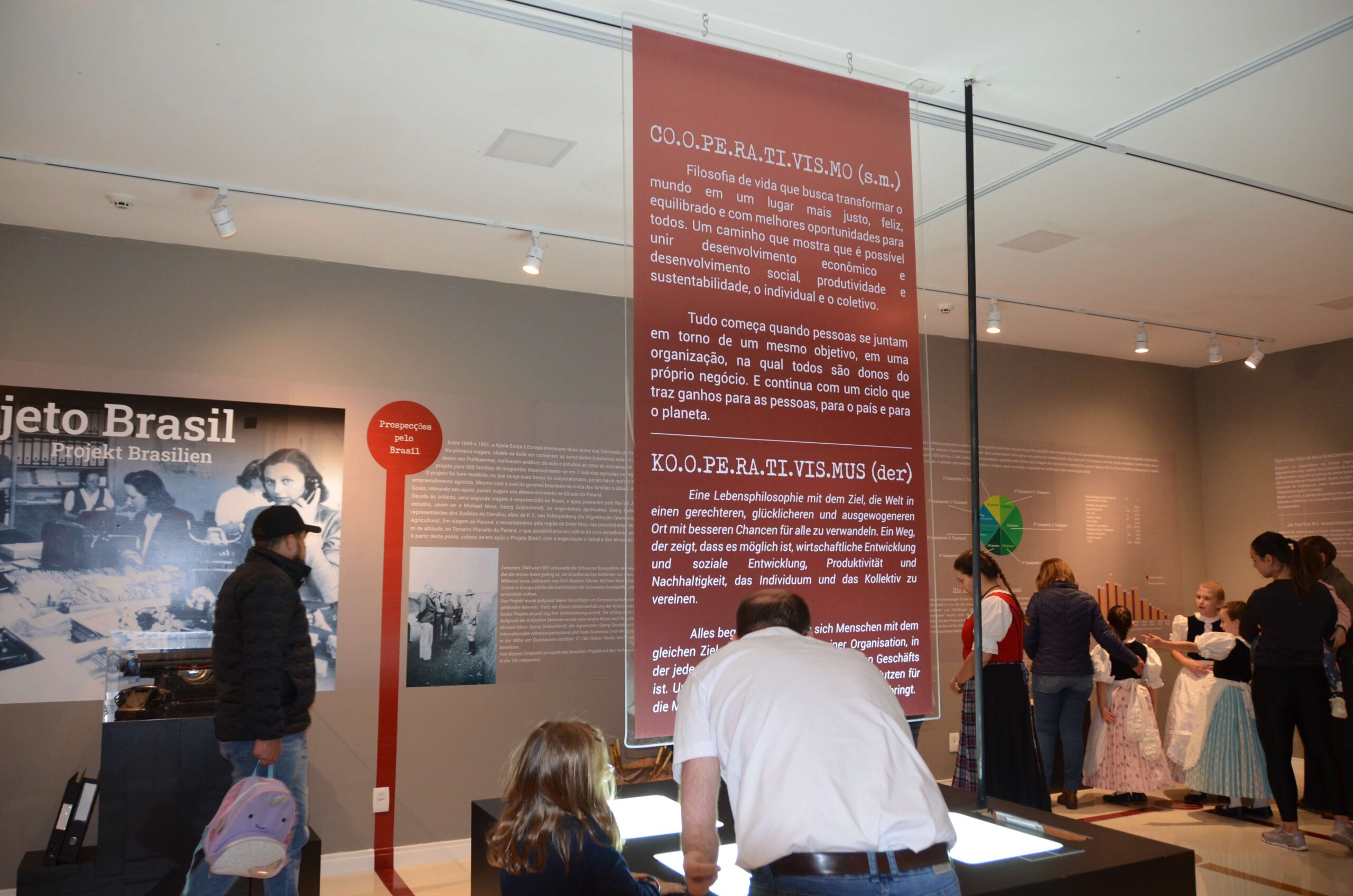 Nesta exposição, propôs-se uma viagem, com partida e chegada no cooperativismo. Por estes trilhos convidamos cada visitante a escolher uma linha, viajar por novos caminhos (desviar-se, se desejasse), descobrir os passageiros suábios e conhecer suas Histórias.
