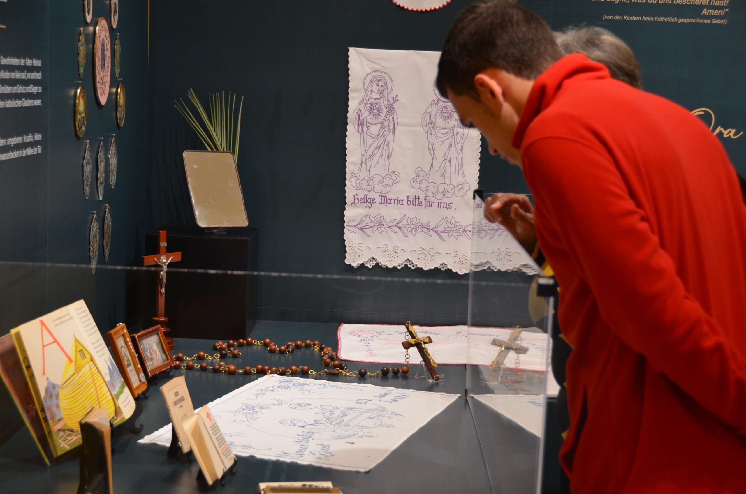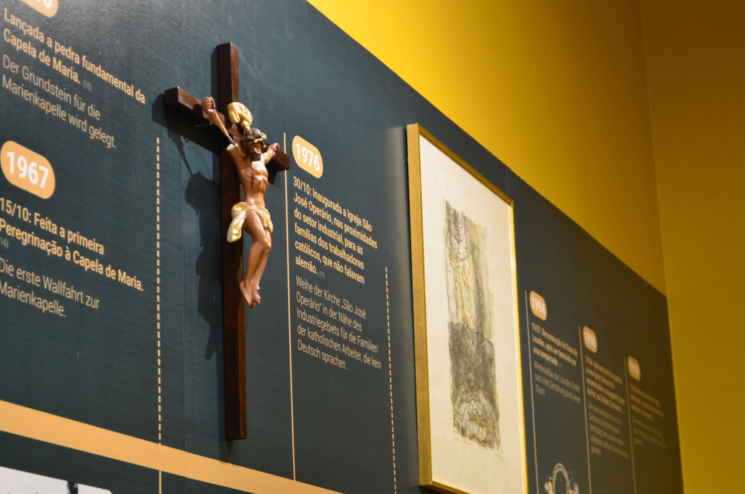 Nesta exposição, apresentamos algumas destas várias formas de expressar a fé no dia a dia, do aconchego das casas às manifestações públicas. E lhe convidamos a nos contar, não importa se Hahnikler ou Kreizköpp: Quais são as suas formas de se conectar com o sagrado?